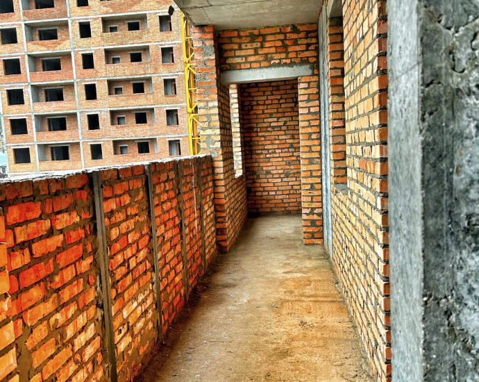 - 1 секція: Тривають будівельні роботи на рівні 13 поверху. Продовжується вкладання цегли для внутрішніх та зовнішніх стін на 3 поверсі, а також розпочато роботи на 4 поверсі.